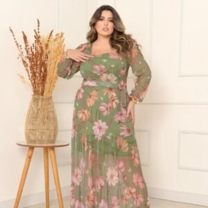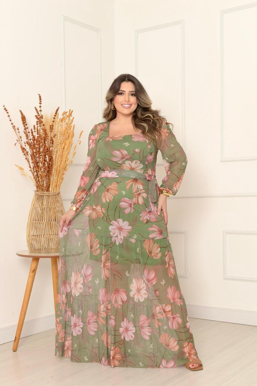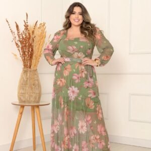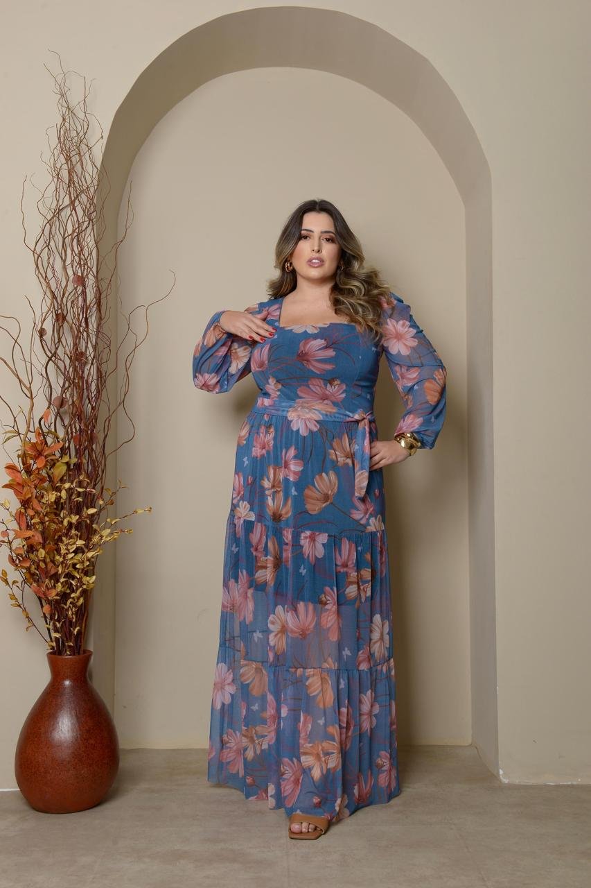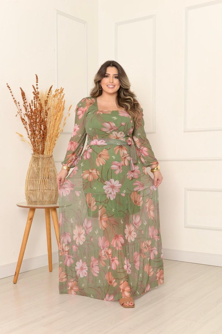Vestido Manga Longa Decote V Plus Manga Longa Decote Quadrado