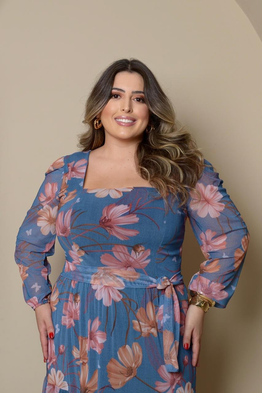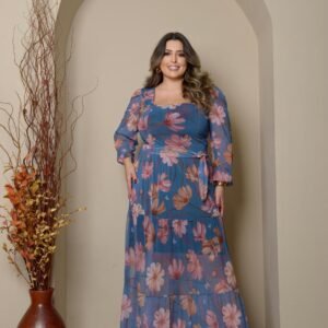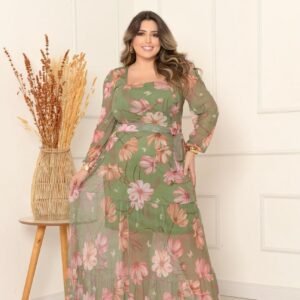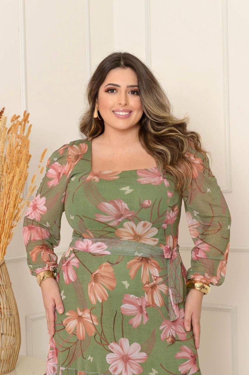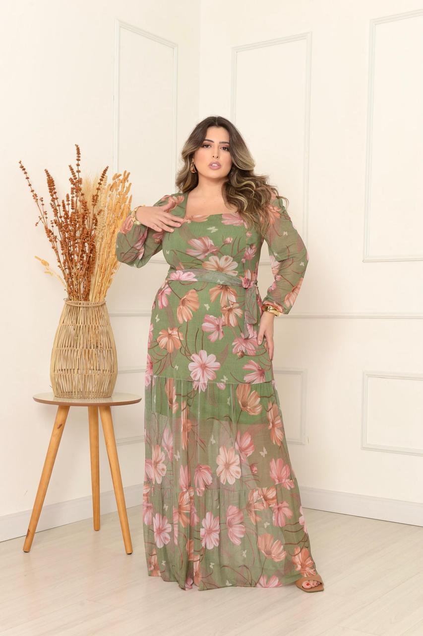 Vestido Manga Longa Decote V Plus Manga Longa Decote Quadrado